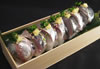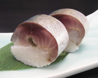 青森県八戸産の肉厚のさばを塩ふり、大吟醸の酢でしめた脂のり肉厚棒寿司です。